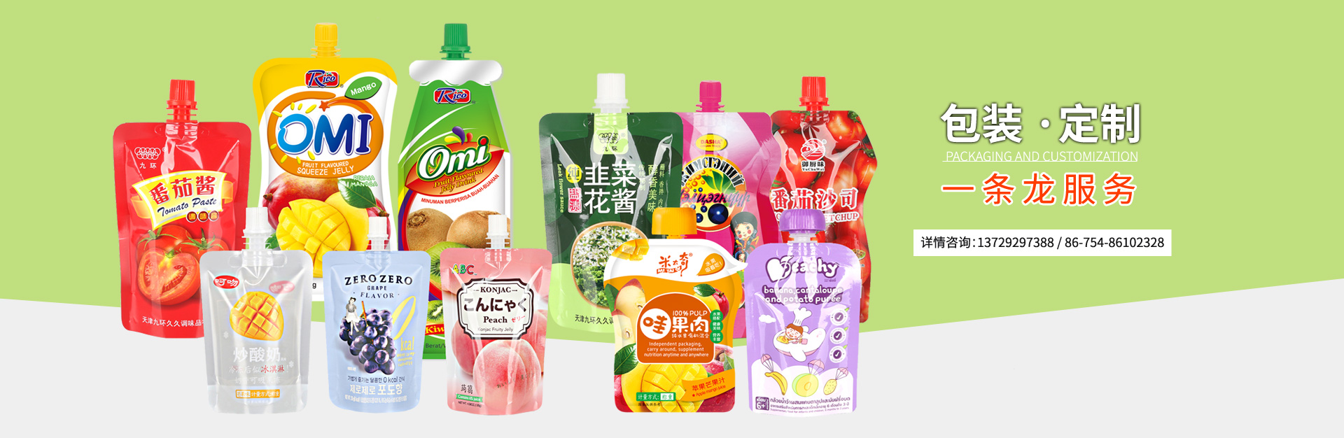 主要生產(chǎn)各類軟包裝,易撕果凍、巧克力封口膜,酸奶、飲料封口膜,自立吸嘴袋,企鵝包吸嘴袋,異形吸嘴袋,自立拉鏈袋,抽真空袋,高溫蒸煮袋,食品包裝卷膜,熱收縮膜標(biāo)簽,日化洗滌用品等高質(zhì)量的包裝產(chǎn)品。產(chǎn)品直銷國內(nèi)30多個(gè)省市,并出口到美國,英國,法國,加拿大,土耳其,利比亞,巴基斯坦,印度,南非,柬埔寨,馬來西亞,印尼,菲律賓等多個(gè)國家和地區(qū)。...